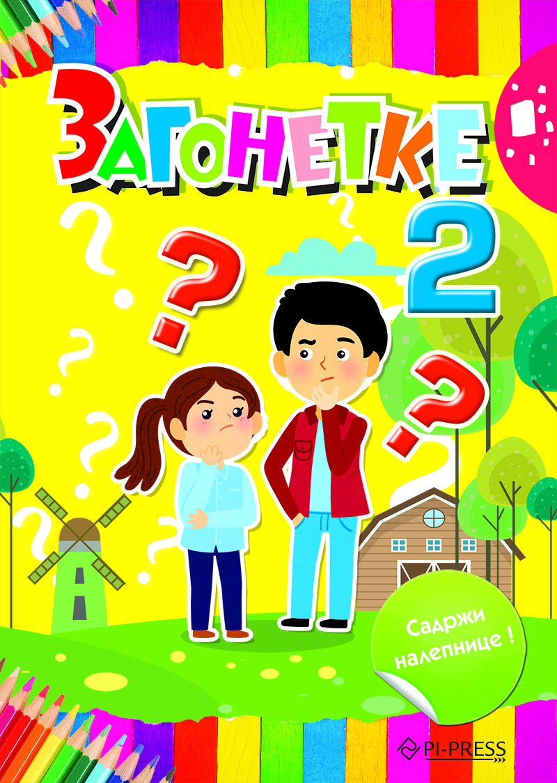 Zanimljiva zbirka narodnih zagonetki čija su rešenja data u vidu šifre. Ako dete ne može da se seti šta zagonetka znači, dobiće odgonetku kada dešifruje šifru prema datom „ključu”. Da bi zabava bila potpuna, tu su i nalepnice sa slikama koje treba zalepiti na odgovarajuća mesta.
